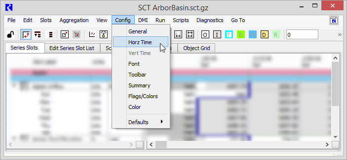 3. On the SCT menu, select Config, then Horz Time.