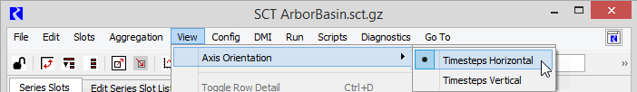 2. In the SCT menu, select View, then Axis Orientation, then Timesteps Horizontal.