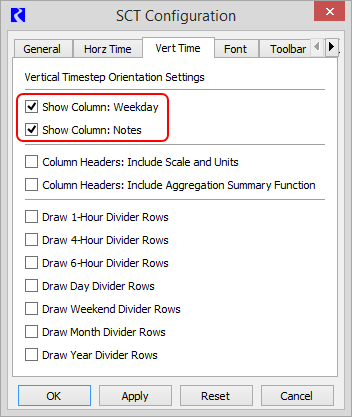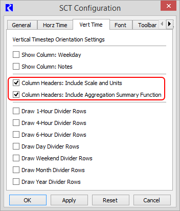 4. Specify the columns to include in the timestep row header. Select a check box to include the column, or clear the check box to hide it.