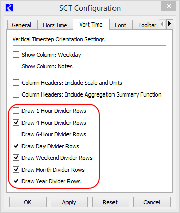 Configure vertical timestep display