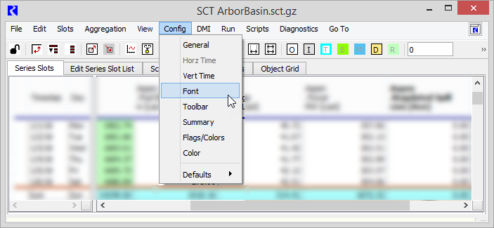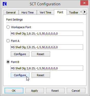 1. On the SCT menu, select Config, then Font.