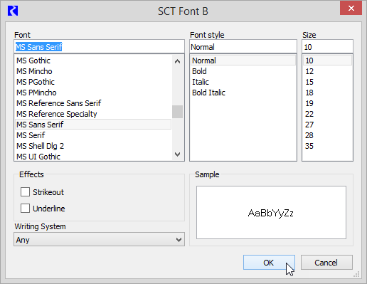 The SCT Font dialog box opens.
