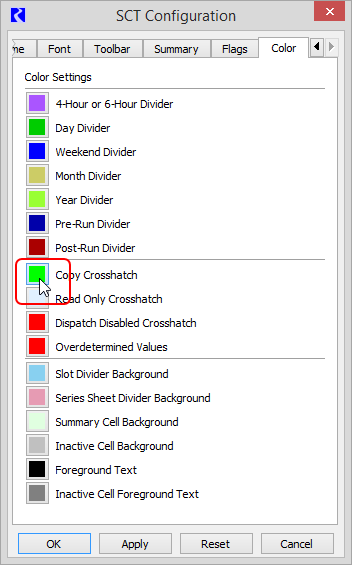 Use this procedure to assign user-defined colors to any of the following items used throughout the SCT: