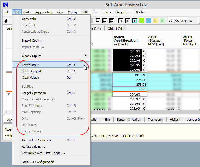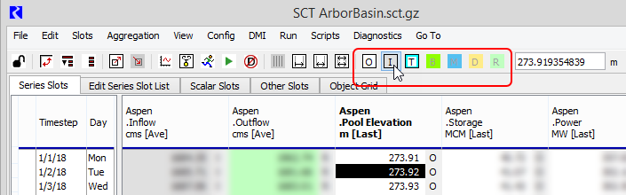 • You can set the Input (I) and Output (O) flags on editable slot timesteps.