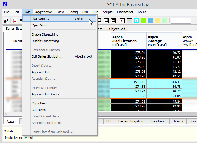 3. On the SCT menu, select Slots, then Plot Slots; alternatively, press Ctrl+P.