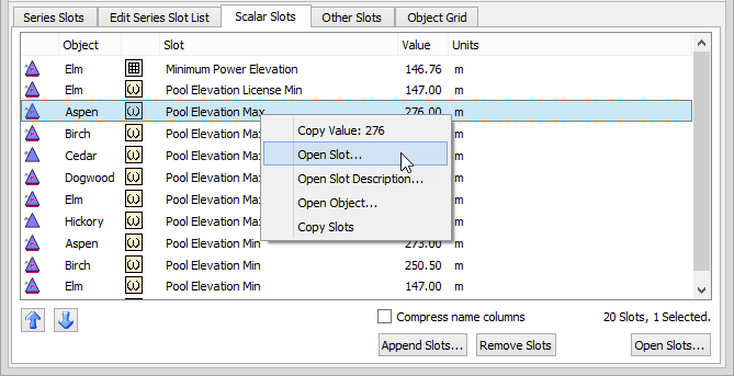 Use this procedure to open other slots, such as scalar, table, and periodic slots, in the Slot Dialog window. You can select only one slot at a time, and each slot opens in a separate Slot Dialog window.