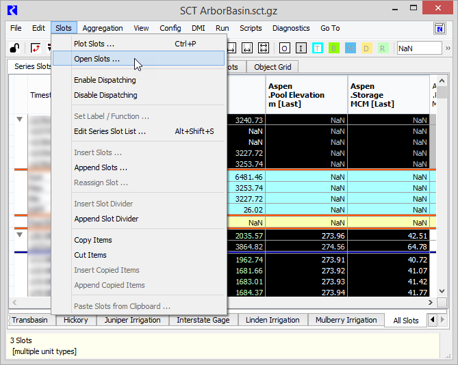 – To open multiple slots at once, select the slots; then in the SCT menu, select Slots, then Open Slots.