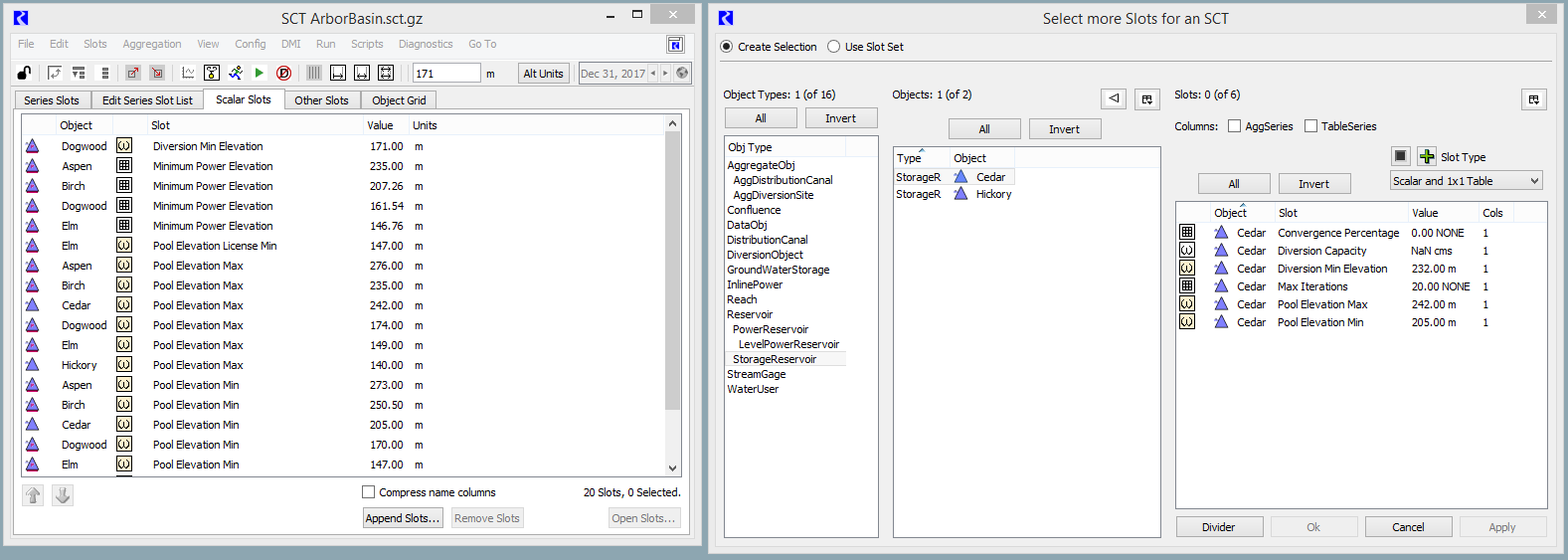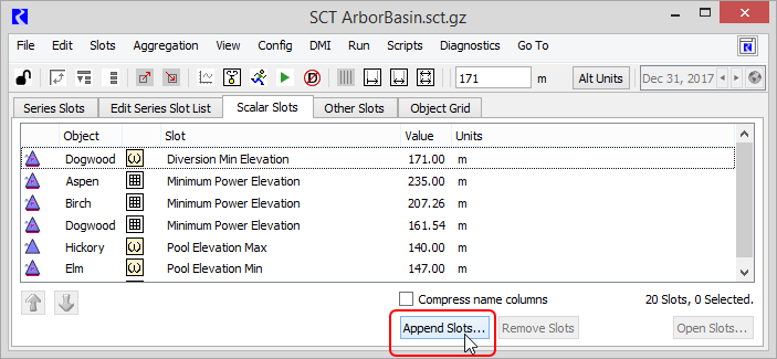 Note:  You can only add slots that exist in the currently loaded RiverWare model.