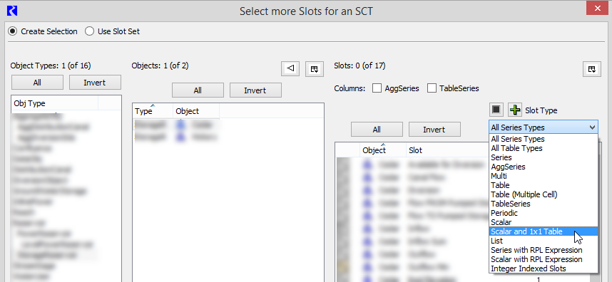 3. In the Slot Type menu, select Scalar and 1x1 Tables.