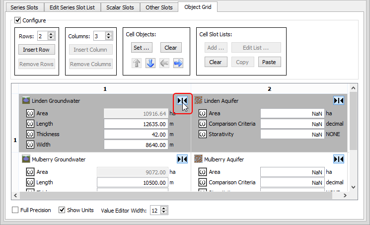 Use this procedure to show or hide the slot list in one or more selected cells. This is useful when you want to hide some slot lists so you can focus on others in a large object grid.