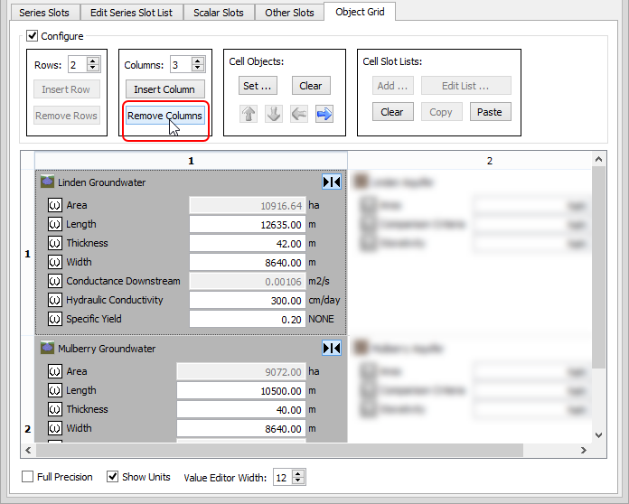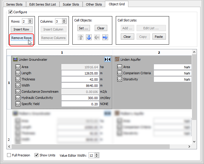 Remove rows and columns from the object grid