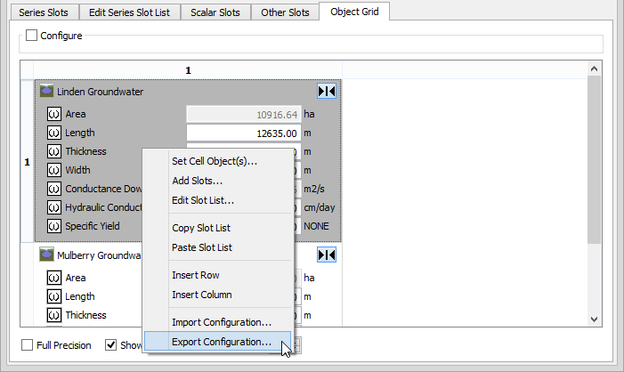 3. Right-click any cell in the object grid and select Import Configuration in the shortcut menu.