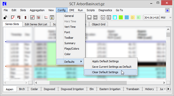 Use this procedure to restore the factory default SCT configuration—that is, the configuration that is delivered with the RiverWare installation. This replaces the user-defined default configuration, if one exists. The factory-default settings will be applied to all new SCTs when they are created. This procedure does not affect existing SCTs.
