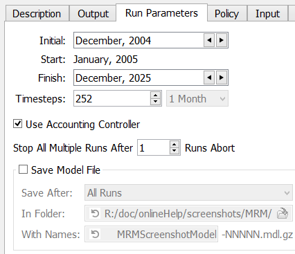 • Within the MRM Configuration dialog with the iterative mode, there is no Run Parameters tab. The iterative runs will begin at the start timestep of the model run. If users wish to change the model start timestep, this should be done in the single Run Control dialog.