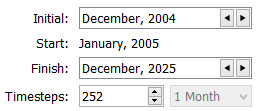 • Change the number of timesteps for the first consecutive run by selecting the existing number of timesteps and toggling the up/down arrows of the ensuing integer spinner. The Finish Date automatically updates.