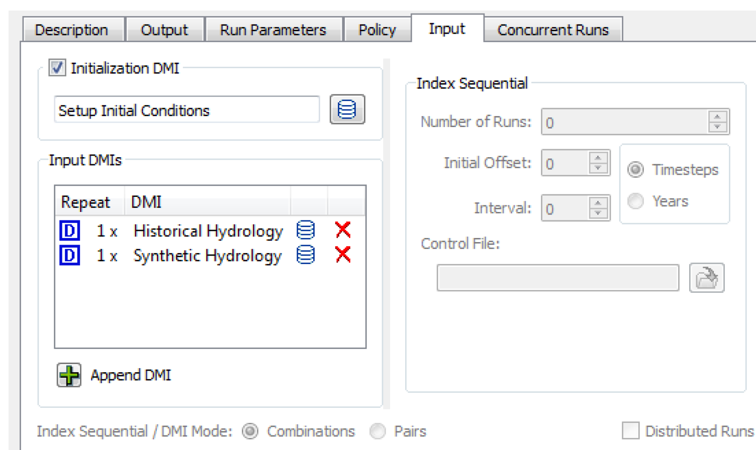 – If the Pairs option for DMI/Index Sequential Mode has been selected on the Input tab, the total number of runs should equal the number of pairs of Input DMIs and Index Sequential runs. If the number of input DMIs does not match the number of Index Sequential runs, then the number of index sequential runs equals the total number of possible pairs, (i.e., the minimum of the number of input DMIs and the number of Index Sequential runs). (See the Index Sequential / DMI Mode section for more details.)