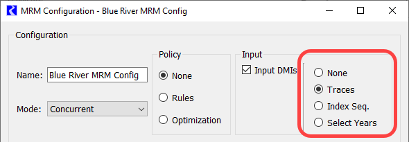 Per Trace Output DMI field allows selecting or entering an output DMI or a group of output DMIs that will be run after each single run of the multiple run. HDB ensemble datasets cannot be used in these DMIs, but rather must be used in the MRM ensemble configuration; see