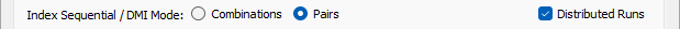 When an Input mode that supports distributed MRM is selected (Traces, Index Sequential with pairs mode selected, or Select Years), the Input tab has a Distributed Runs checkbox that becomes enabled. When checked, the Distributed Runs tab is added to the dialog.