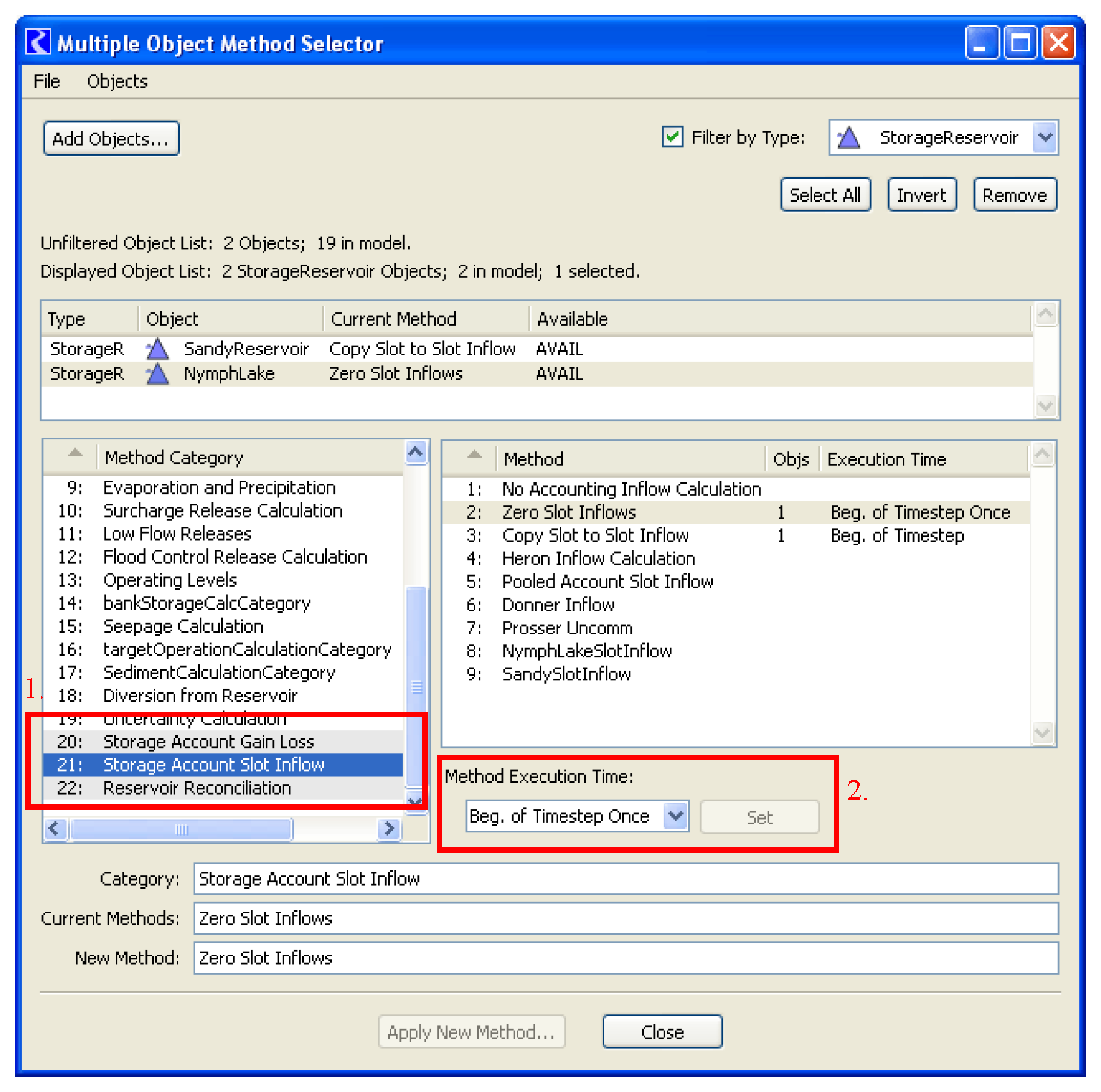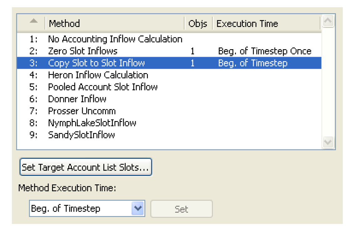 The Multiple Object Method Selector also has special features for the Copy Slot to Slot Info OLAM; see Copy Slot to Slot Inflows in Accounting for details.