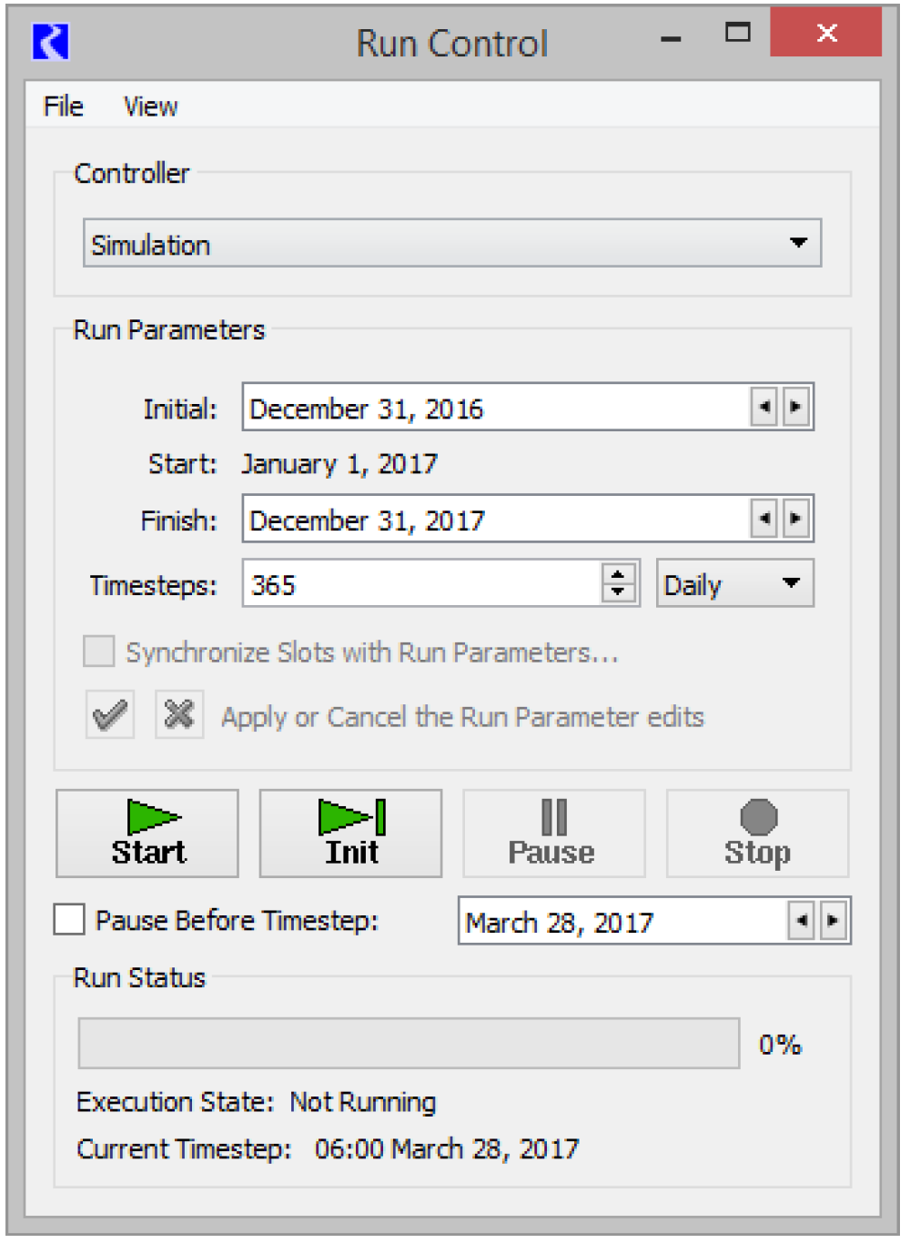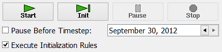 • Pause Before Timestep. Pause the run before the specified timestep. This is particularly useful when debugging a model run.