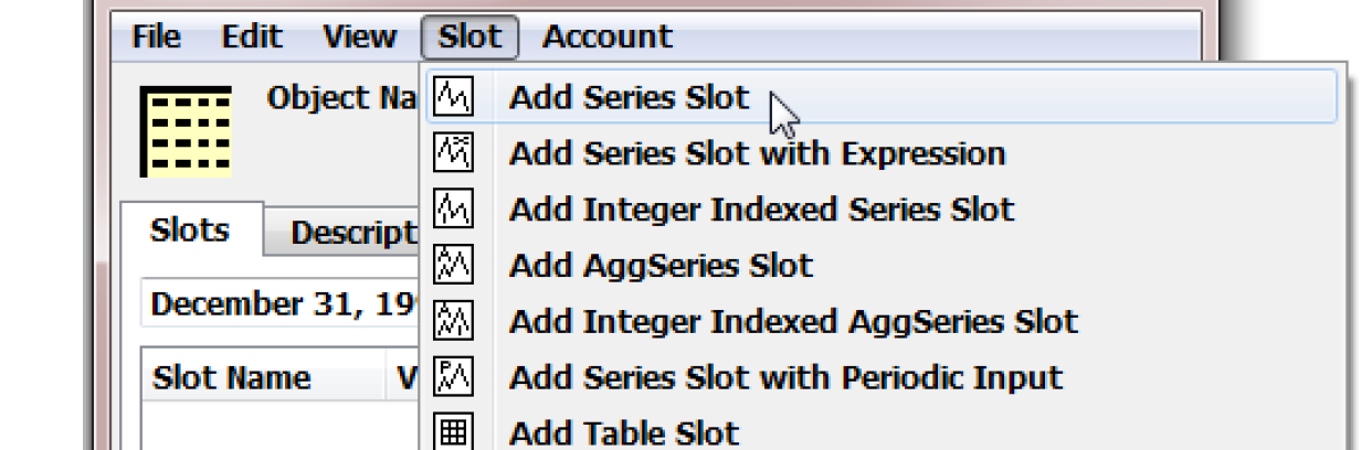 2. From the object dialog, double-click your new Series Slot to show the Open Slot dialog or Slot Viewer.