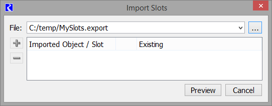 Figure 6.64  Screenshot if Import Slots preview with slots that cannot be imported