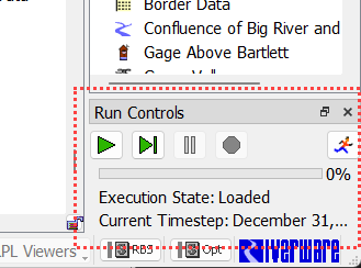 Typically, Full mode is used when building a model or investigating objects on the workspace. Compact mode is used when you don’t need to see the canvas views and you want to use the toolbar buttons and menus to run a script, execute a run or look at outputs. In this approach, some users will open RiverWare, detach the Object List and Run Controls and then switch to Compact mode to provide a more efficient use of screen space.