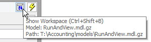 | Save a model - The button opens a menu that gives you a choice to either Save or Save As. The tool tip shows the name and path of the saved model. | | Switch between the Simulation View, Geospatial View, Web Map View and the Accounting View (if Accounting is enabled) |