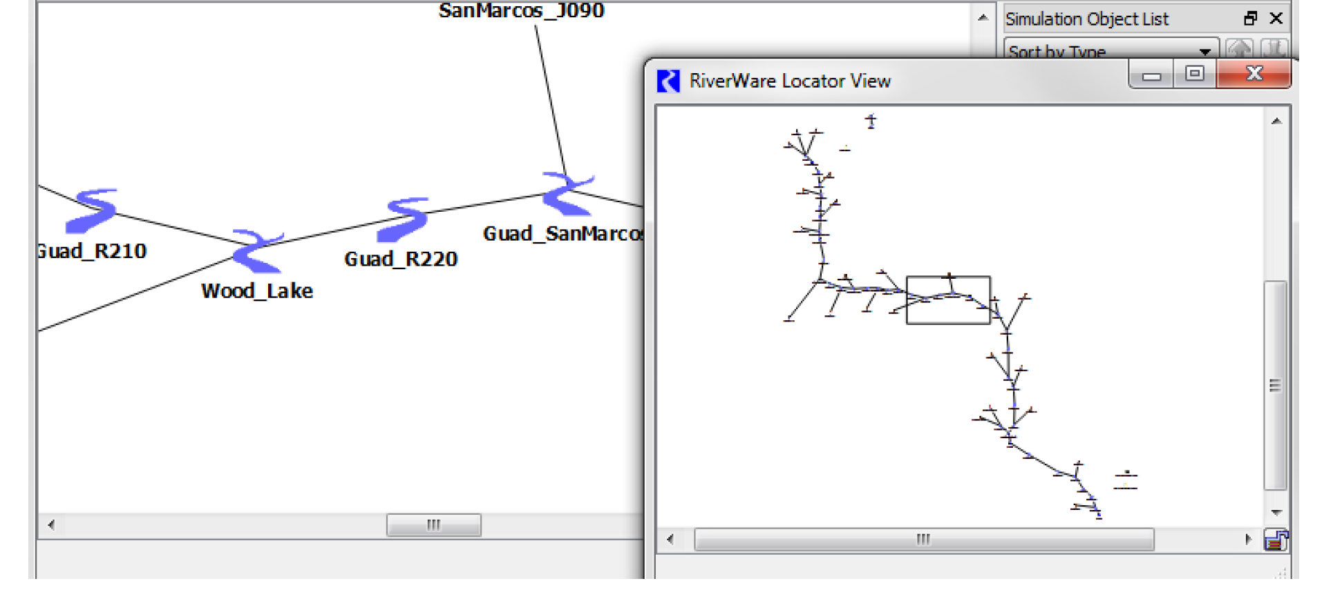 On the Simulation and Accounting views, an overview of a model can be accessed with the locator view. The locator view displays the entire workspace on a miniature scale. The locator view is accessed as follows:
