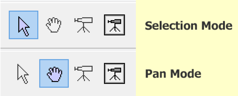 The Workspace has two cursor selection modes. These define the effect of clicking and dragging on the workspace.