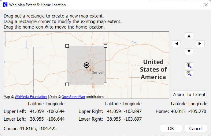 Map Extent & Home Location Dialog - Graphically Specify Coordinates