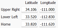 • Lower Left Latitude and Longitude: specify the geographic coordinates of the lower left corner of the view.
