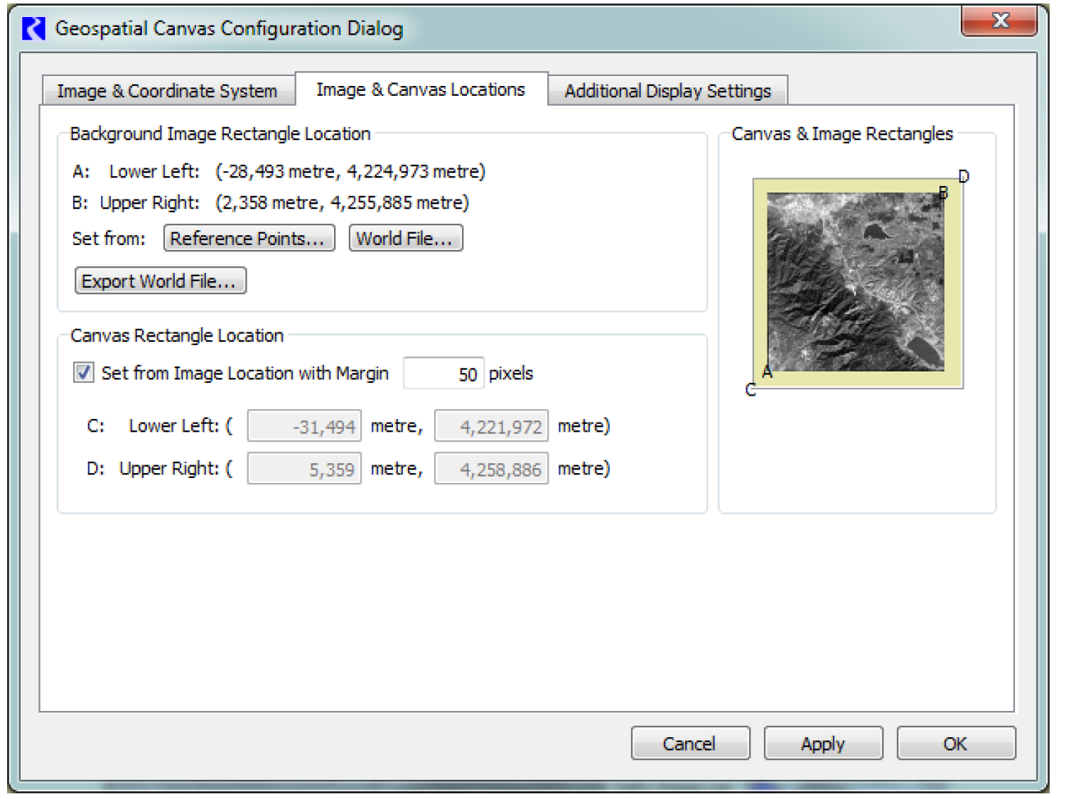 8. Select OK and it shows those coordinates in the Canvas Configuration and the preview is updated: