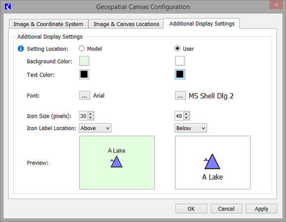 14. Switch to the Additional Display Settings and make any changes as necessary or desired. For smaller basins, you may wish to make the icon size and font size smaller.