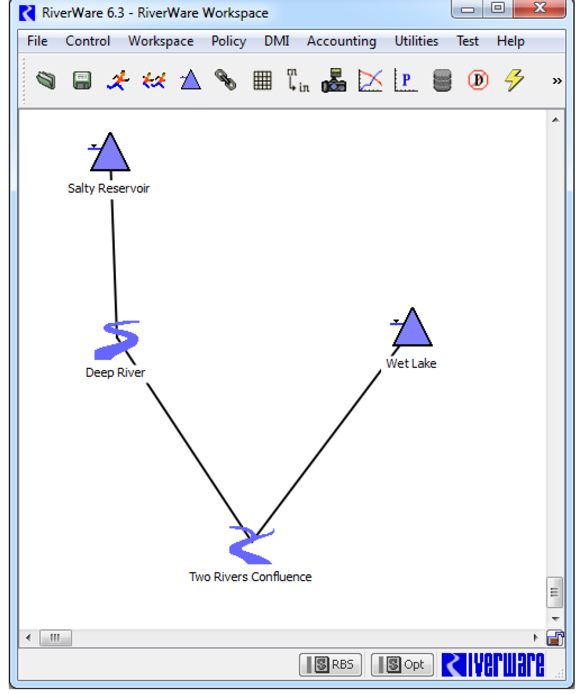 Caution: This can take a few seconds to open as RiverWare contacts the server and gets the default maps.