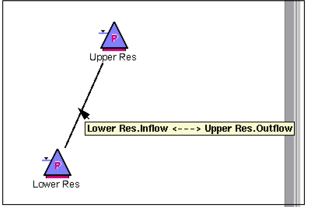 Links are the connections between slots on objects which pass information during a simulation run. They propagate a value from a slot on one object to a slot on a different object. Several links may exist between different slots on two objects, but only one line is represented on the workspace. By hovering over the link, all the linked slots are displayed in a tool tip.