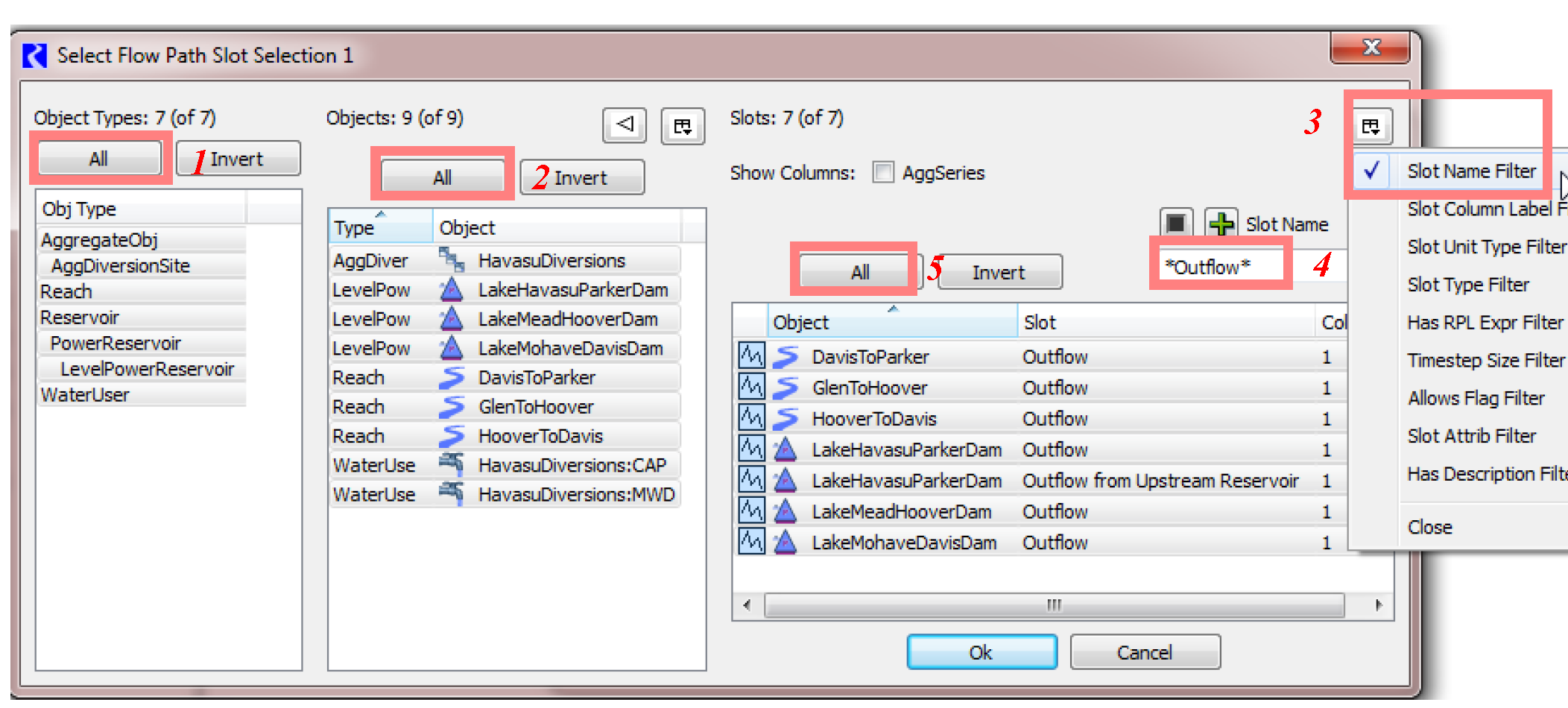 6. Select Ok. Use the Any Slot option or choose only Inflow slots.