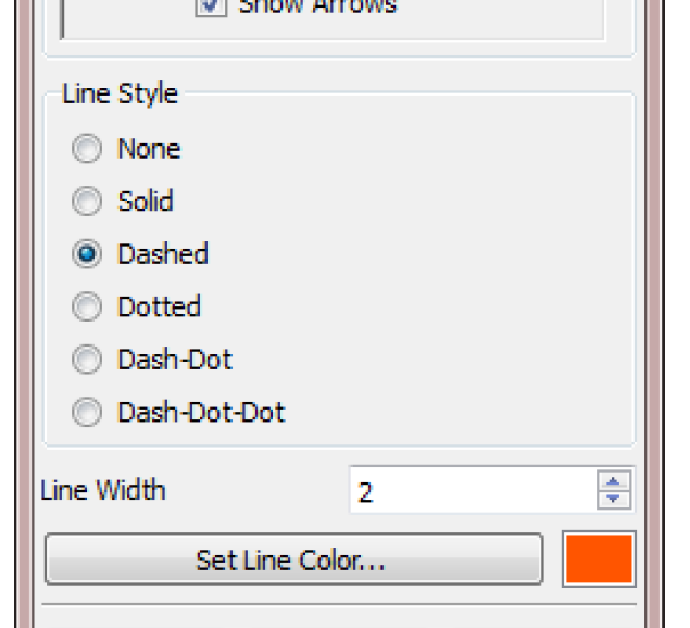 Link Groups allow you to change the appearance of links on the workspace views including color, line type, line width, and showing arrow heads.