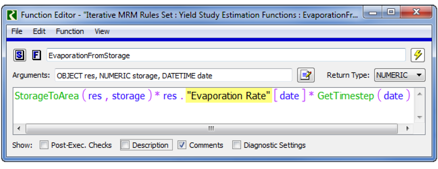 Note:  If you are using Heuristic A or Heuristic B, you may need to change the function EvaporationFromStorage to access the correct Evaporation Rate slot. It should reference the slot with input data.