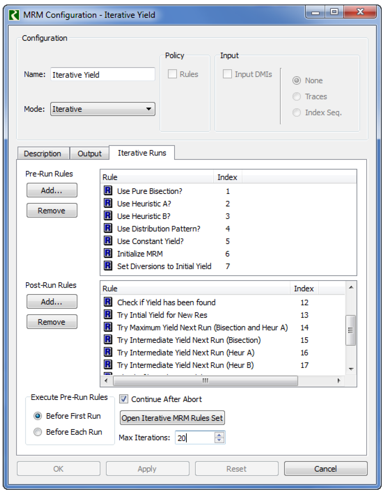 b. This will open the Iterative MRM Rules. To initiate the import into this set, select File, then Import Set. Select the file YieldStudy.rls.gz.