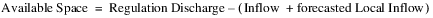 For the purpose of Equation 3.2, Inflow includes the value of the Inflow slot (at the time of the last dispatch) and the additional inflow resulting from the hypothetical additional releases from upstream reservoirs 2. It also contains the proposed flood control release hydrograph from the last pass of the flood control method.