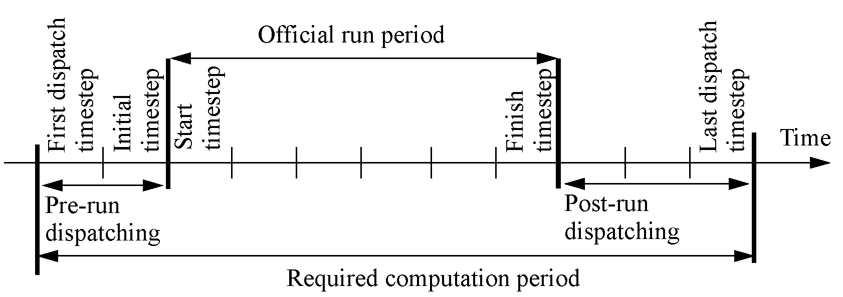 To configure post-run dispatching, set the number of post-run dispatch timesteps equal to the forecast period; see Number of Post-Run Dispatch Timesteps in User Interface for details. For dispatching to occur after the end of the run, certain data must be specified. Following is a description of the required data for post run dispatching