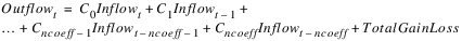 This equation is used to calculate the current and future outflows (from t = current to t = number of coeffs). All of the C values are calculated outside of the model and for each set of coefficients, the C values sum to 1.0.
