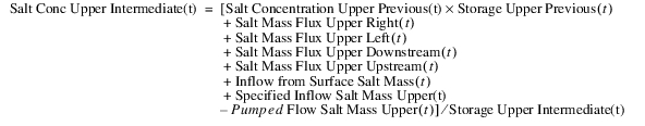 First, compute the upper-layer intermediate storage and salt concentration as follows: