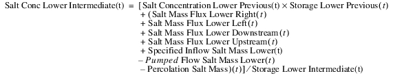 Then, compute the lower-layer intermediate storage and salt concentration as follows: