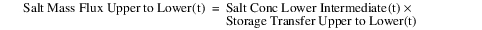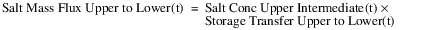 Now that the intermediate storage and salt concentrations have been computed, the method computes how the water and salt transfers between the two layers to maintain a constant thickness of the upper layer. This computation uses the actual storage in each layer and the intermediate values computed previously; see Compute Temporary Storage and Concentration.