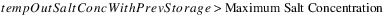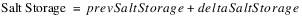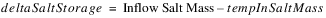 If Salt Storage at the previous timestep is invalid (NaN) or negative, the local variable tempInSaltMass is set equal to 0. Otherwise it is set equal to Salt Storage at the previous timestep.