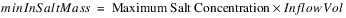 For a negative Inflow, incorporating more salt from storage will lower the Inflow Salt Mass but will raise the Inflow Salt Concentration, so the minimum inflow mass is based on the Maximum Salt Concentration.