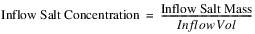 Inflow Salt Mass and Local Inflow Salt Mass are calculated by multiplying each concentration by the corresponding flow volume. If Local Inflow is zero and Local Inflow Salt Concentration is not specified, Local Inflow Salt Concentration and Local Inflow Salt Mass are set equal to zero.