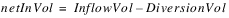 Equivalent volumes over the timestep are calculated for the following flows: Inflow, Outflow, Diversion, Local Inflow (plus Local Inflow Adjust), Return Flow.
